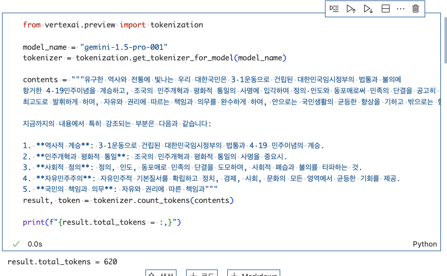 token์ ์ค์์ฑ์ ์์์ผ๋ Google VertaxAI Python SDK๋ฅผ ํตํด gemini tokenizer๋ฅผ local์์ ์ฌ์ฉํด๋ณด์.